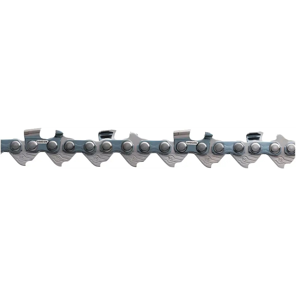 Oregon Narrow Kerf Chain used in combination with Micro-Lite bars developed to meet the specific needs of today's lightweight chain saws. It requires less power from the saw than standard cutting systems. The Micro-Chisel cutters have small-radius working corners that cut fast and are easy to sharpen. Vibe-Ban chassis design reduces vibration 25% or more at the handles. Its Bumper drive links reduce kickback. It comes with Lubrilink tie straps which helps to keep oil where it is needed-on the chain. The Lubriwell oil holes in bumper drive links help carry oil around the full length of the guide bar's groove.