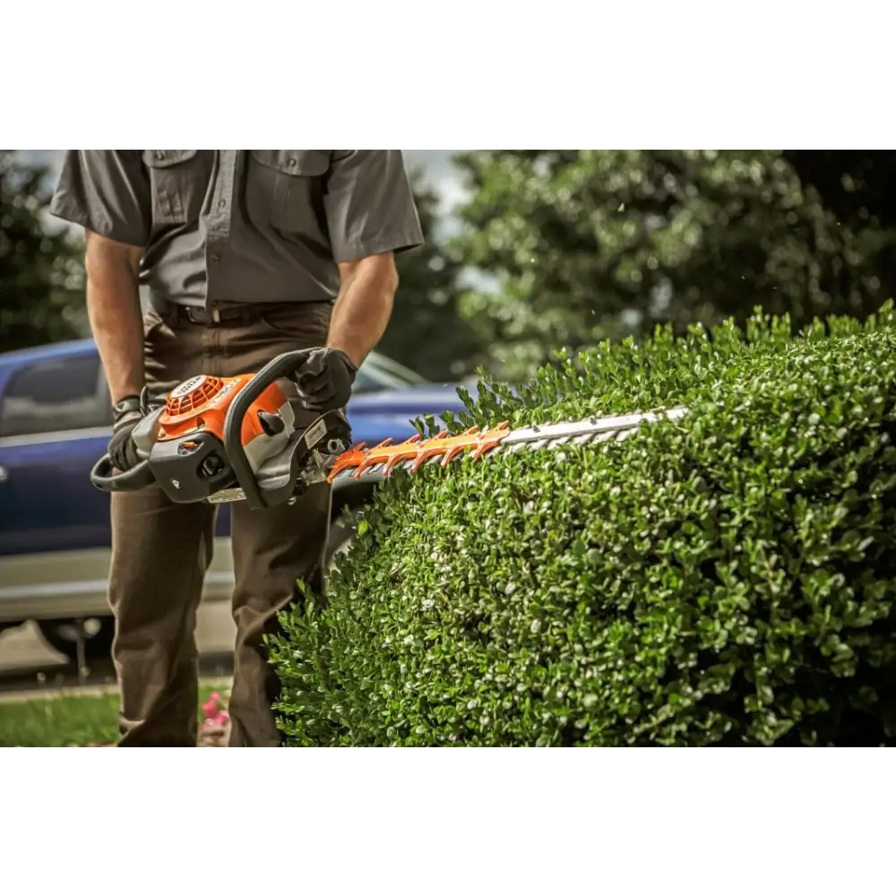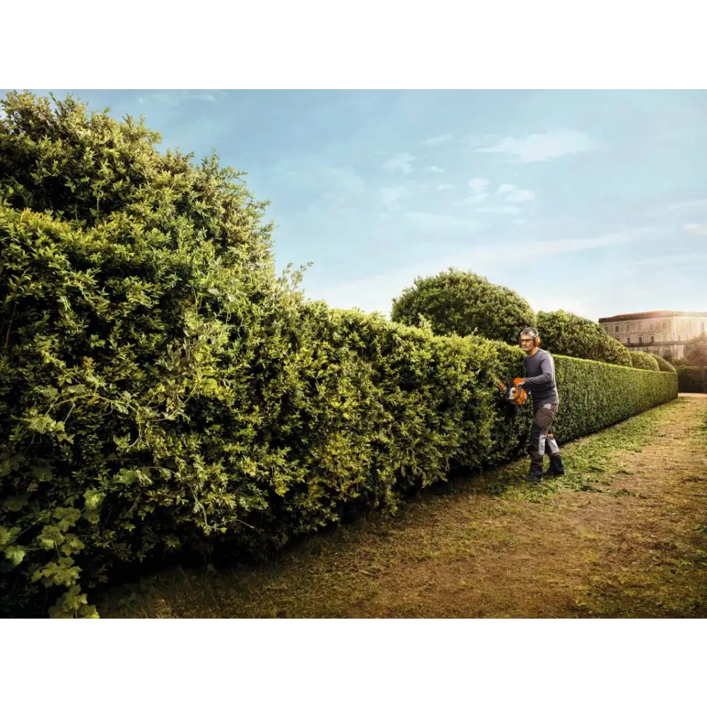 Professional hedge trimmer with 2-Mix engine technology. The HS82 RC-E boasts a double sided cutting blade designed to cut through the toughest of hedges. Large teeth and a lower blade speed allows the machine to cope with thick growth. The reliable, durable blades and gearbox will cope with a variety of uses, whether it's the first cut of the season or general maintenance. With a reduction in weight and increased efficiency, these machines will make light work of all trimming tasks.