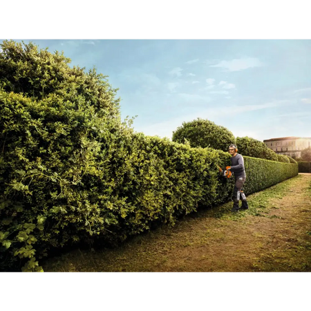 The STIHL 2-mix engine specially designed for the new generation of hedge trimmer combines low consumption and emissions with low weight and excellent acceleration. There are also always sufficient power reserves for cutting thicker shrubs.